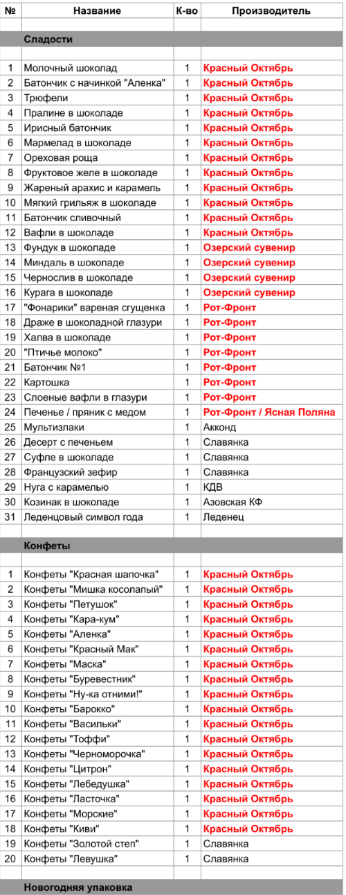 1. Проверить, можно ли внести изменения в состав подарка. Если нет, то скорее всего наборы были собраны еще летом из конфет, произведенных еще раньше